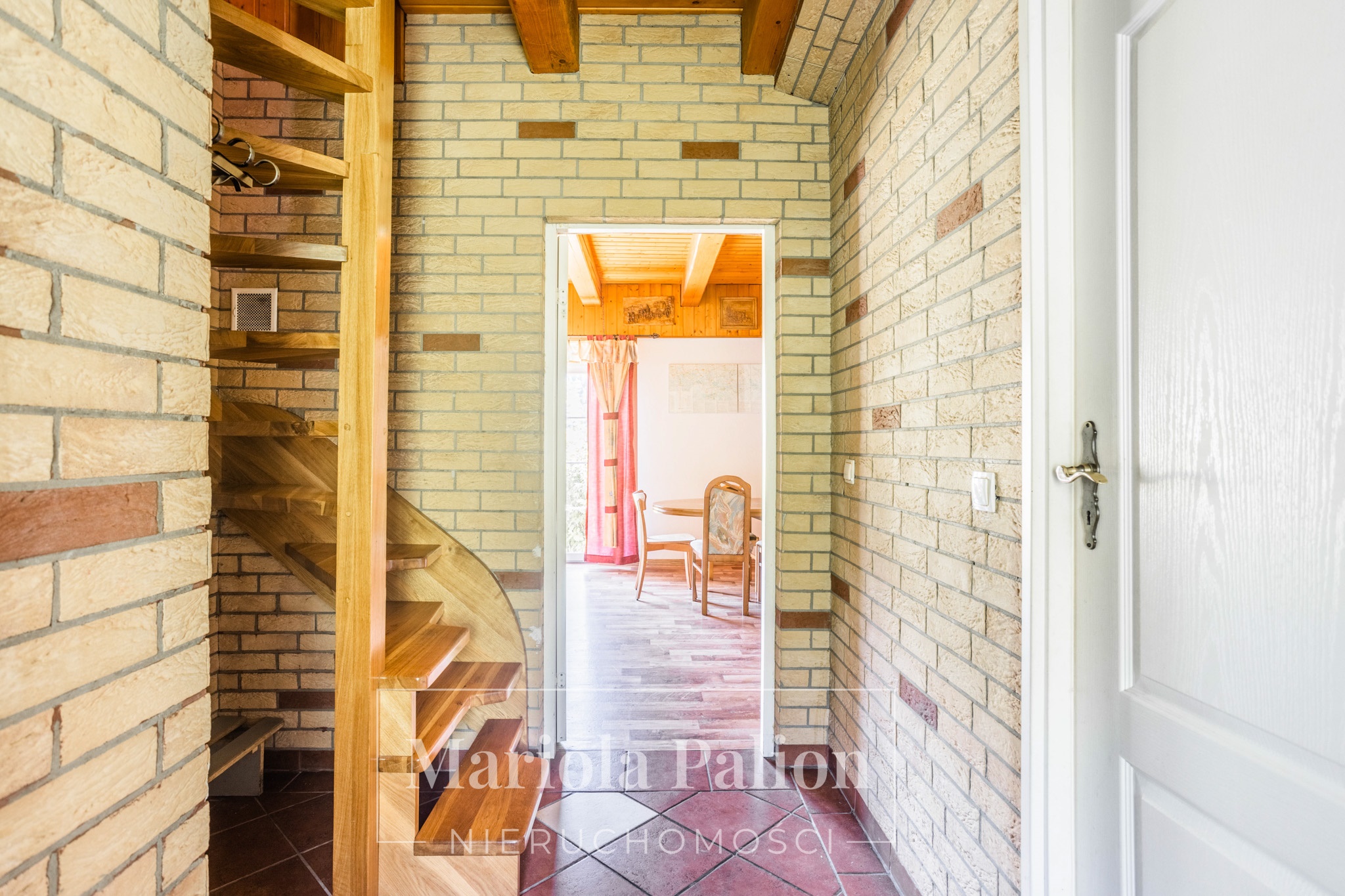 Parter: przestronny salon z jadalnią i aneksem kuchennym, sypialnia, łazienka, wiatrołap, pom. gospodarcze oraz dodatkowe pomieszczenie ok. 40 m² z osobnym wejściem – idealne na przechowywanie sprzętu sportowego.